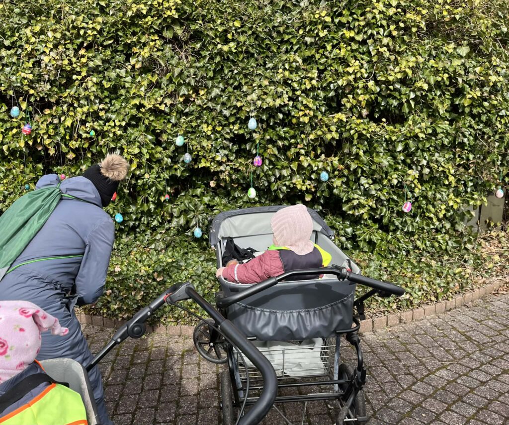 Fra på mandag må vuggestue- og børnehavebørn tage deres voksne i hånden hen til æggene, finde deres egne æg og tage dem med hjem. På den måde kan de både pynte i byen OG hjemme i børnenes egne hjem.