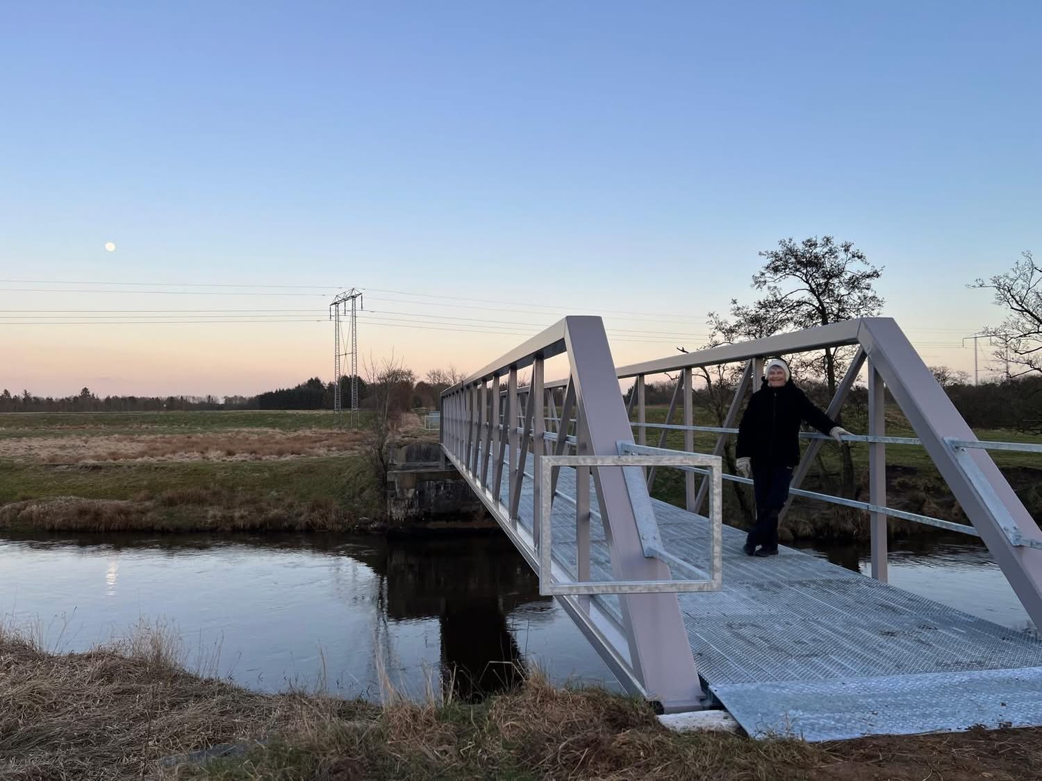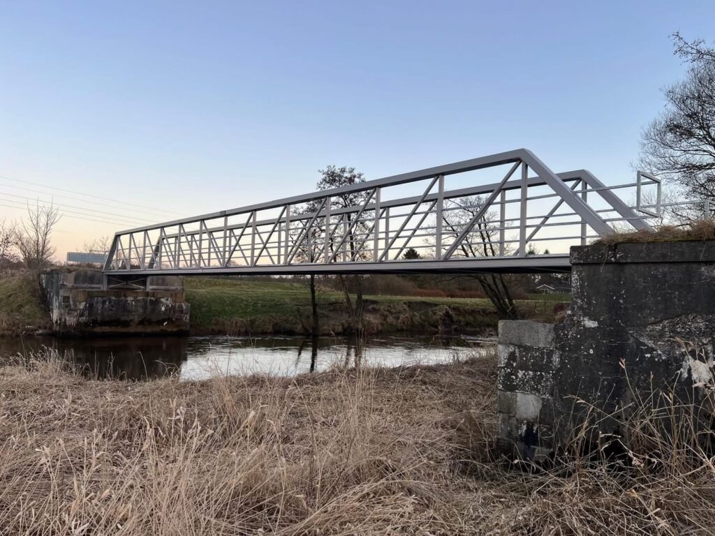 I går fik Sdr. Felding en ny bro over Skjern Å. Den er etableret på fundamentet, som Troldhedebanebroen stod på frem til 2019. Broen har været savnet af mange lokale, som brugte den gamle bro til gåture fra byen og ud til golfbanen.