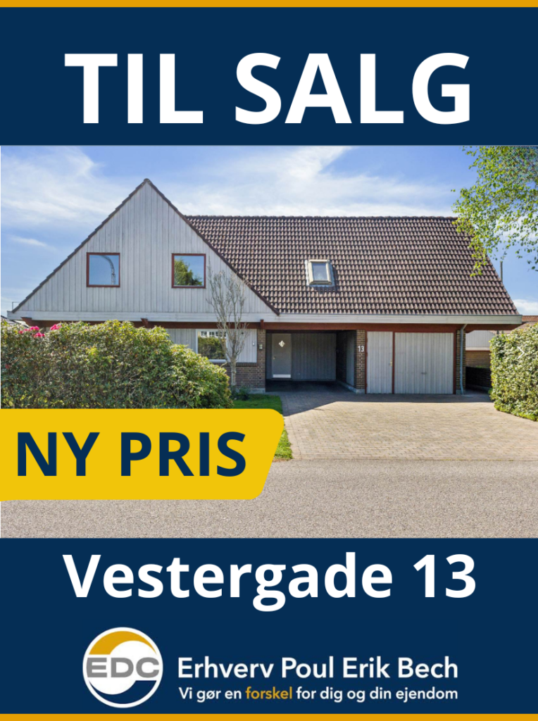 Erhvervsejendommen på Vestergade 13 er netop blevet nedsat med 200.000 kr. Du kan se billeder og salgsopstilling HER!