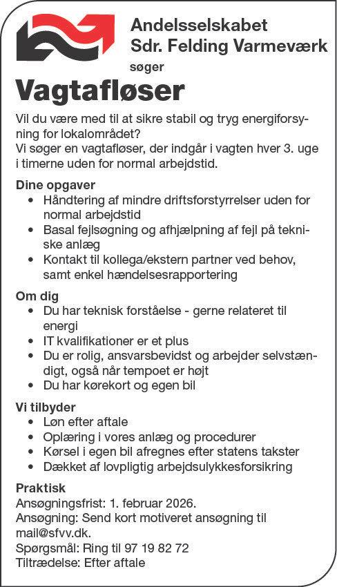 Vagtafløser søges